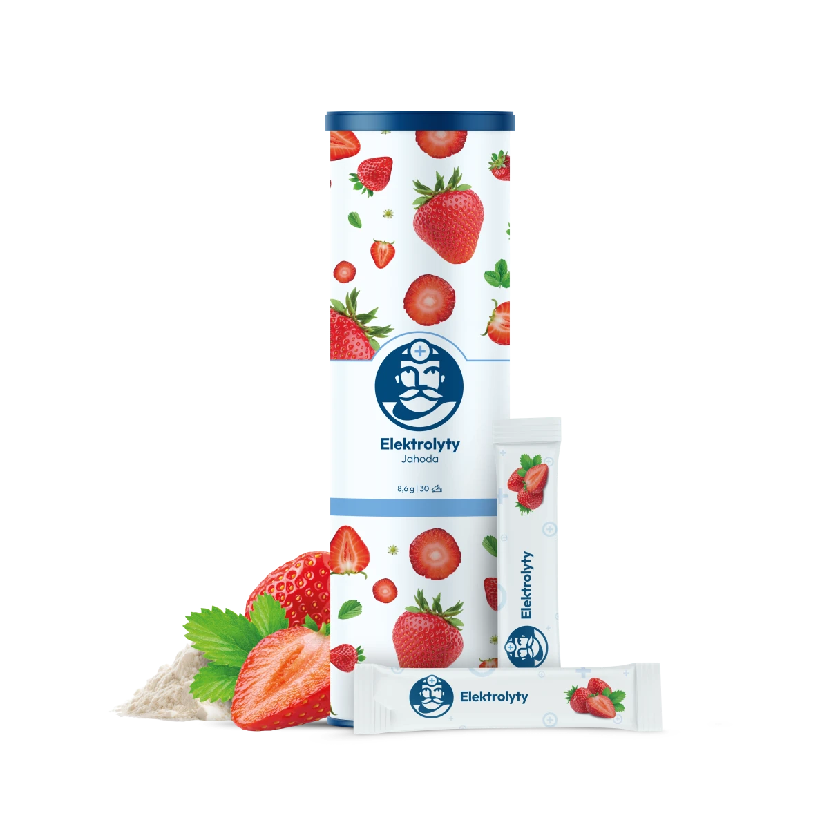 Složení: citran draselný, citran vápenatý, chlorid sodný, citran hořečnatý, aroma: jahoda, regulátor kyselosti: kyselina citrónová, barvivo: extrakt z červené řepy, sladidlo: sukralóza.